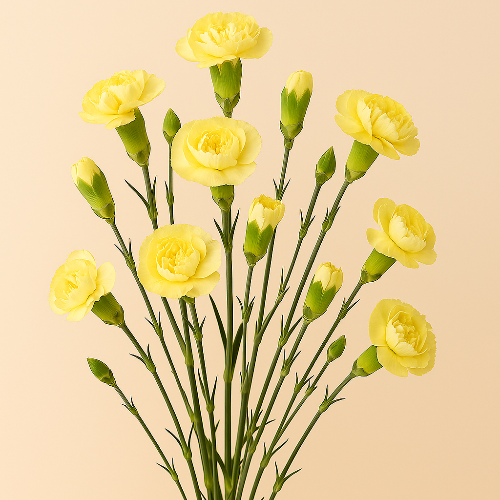 Dzīvīgas un optimisma pilnas – dzeltenas krūmu neļķes ir īsts saules stariņš.