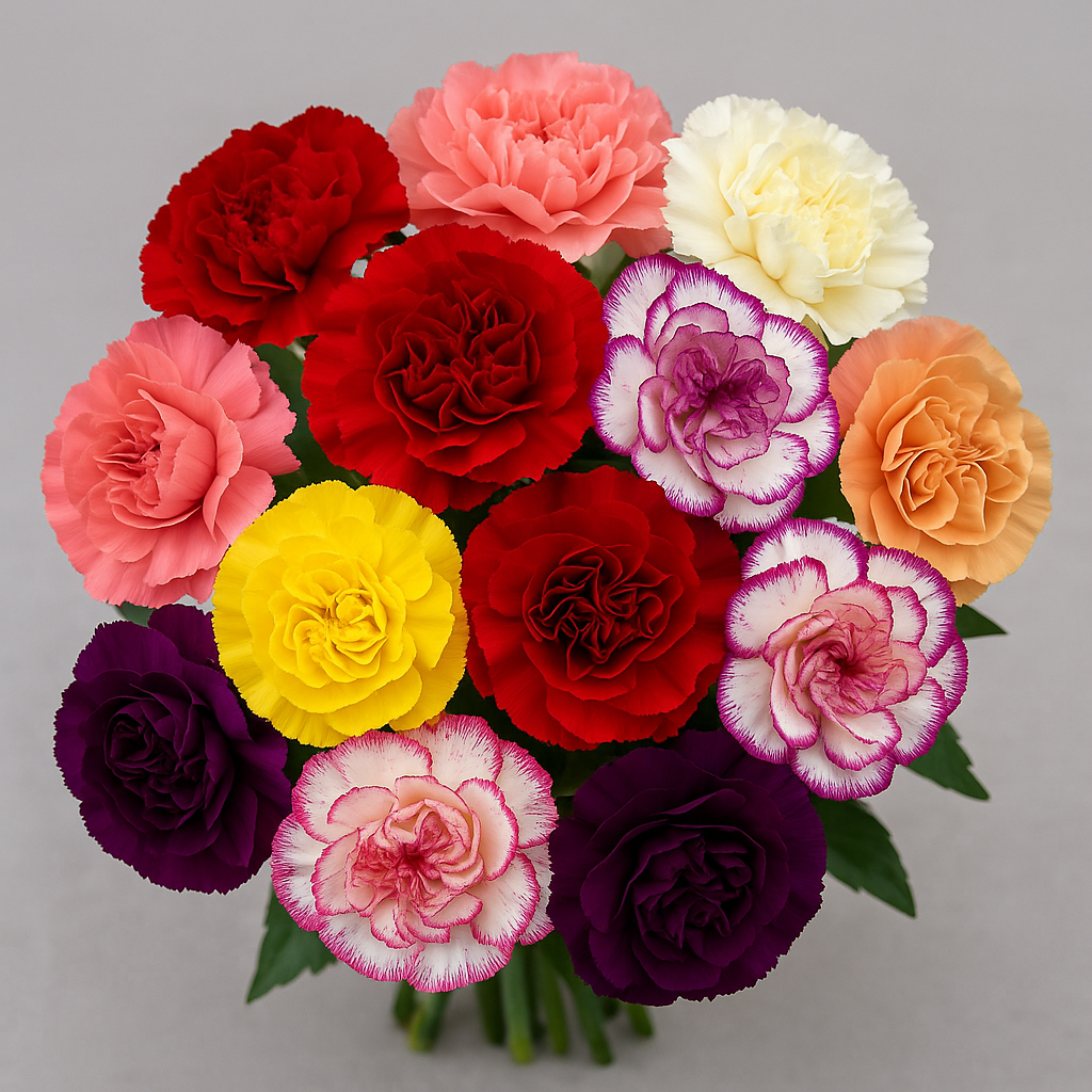 Košo toņu neļķu miksis ir krāsains un enerģisks. Radīs priecīgu un dzīvespriecīgu iespaidu.