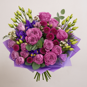 Košais rožu un dažādu ziedu pušķis lielā izmērā