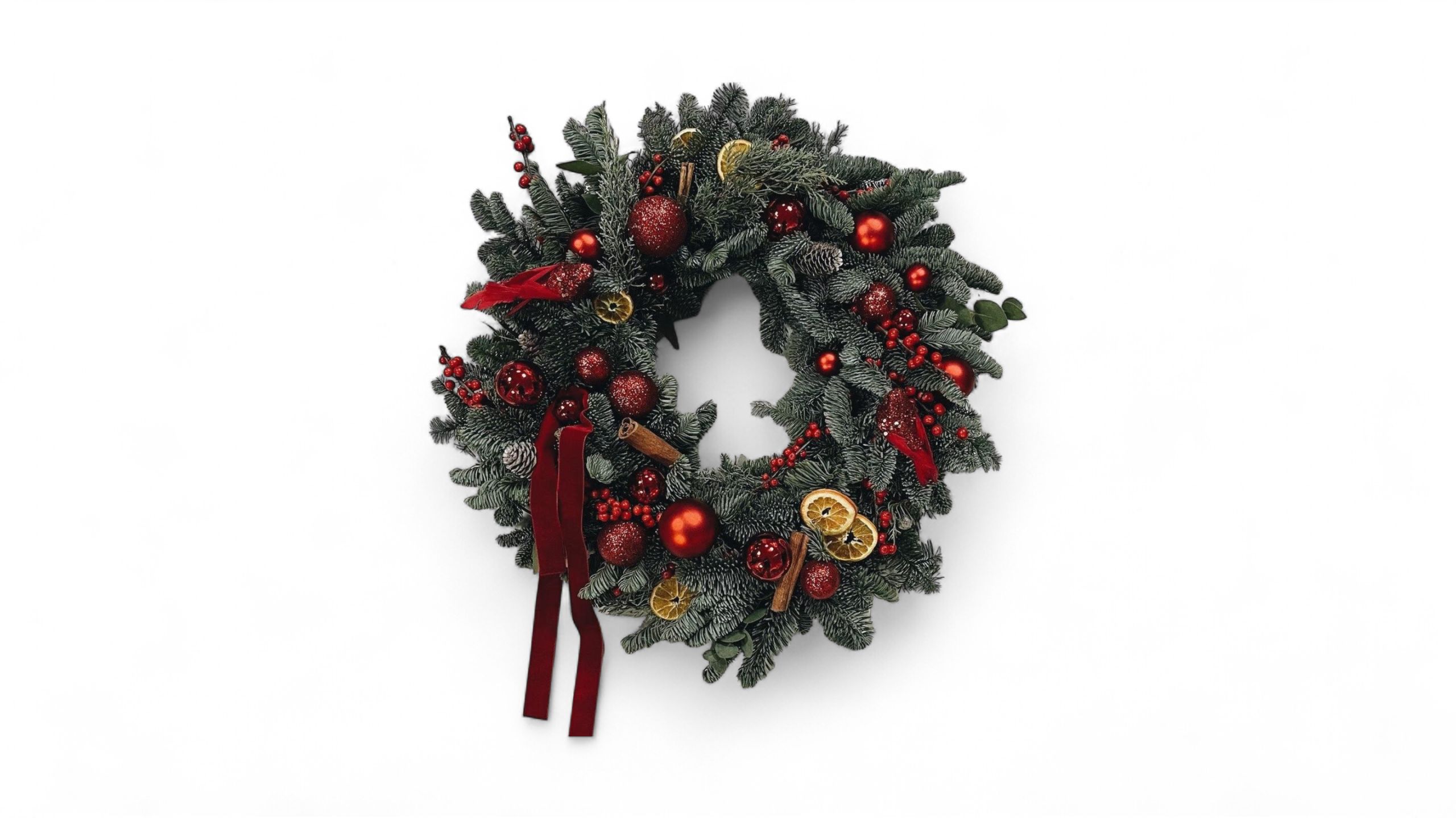 Durvju vainags no baltegles ar dekoru. Attēlam ir informatīvs raksturs.