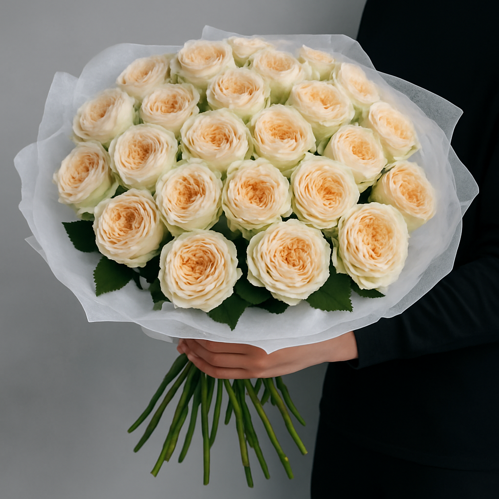 Будьте первым, кто оставит отзыв "Кремовые пионовидные розы"